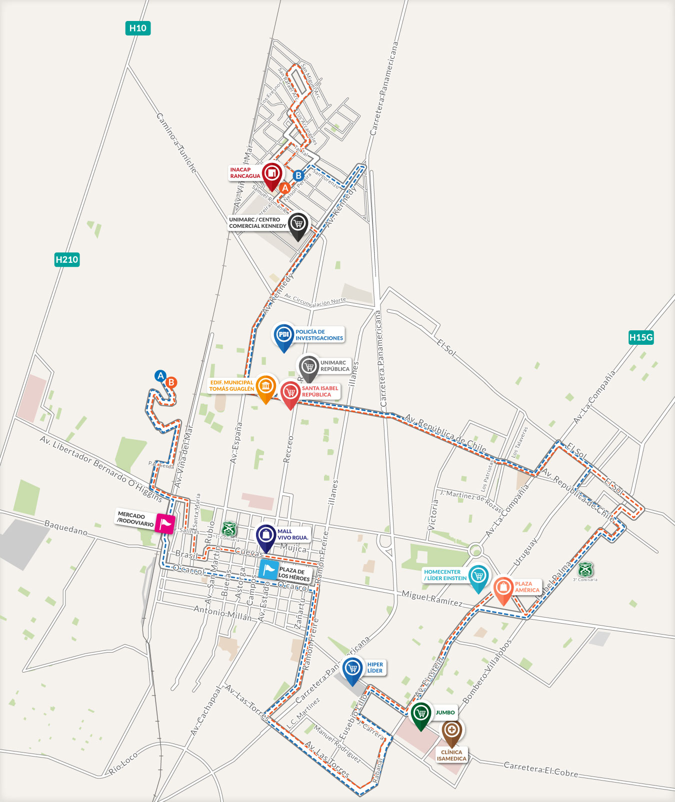 Actualmente poseemos la concesión UGT 100 CIRCUNVALACIÓN en Rancagua con 4 recorridos